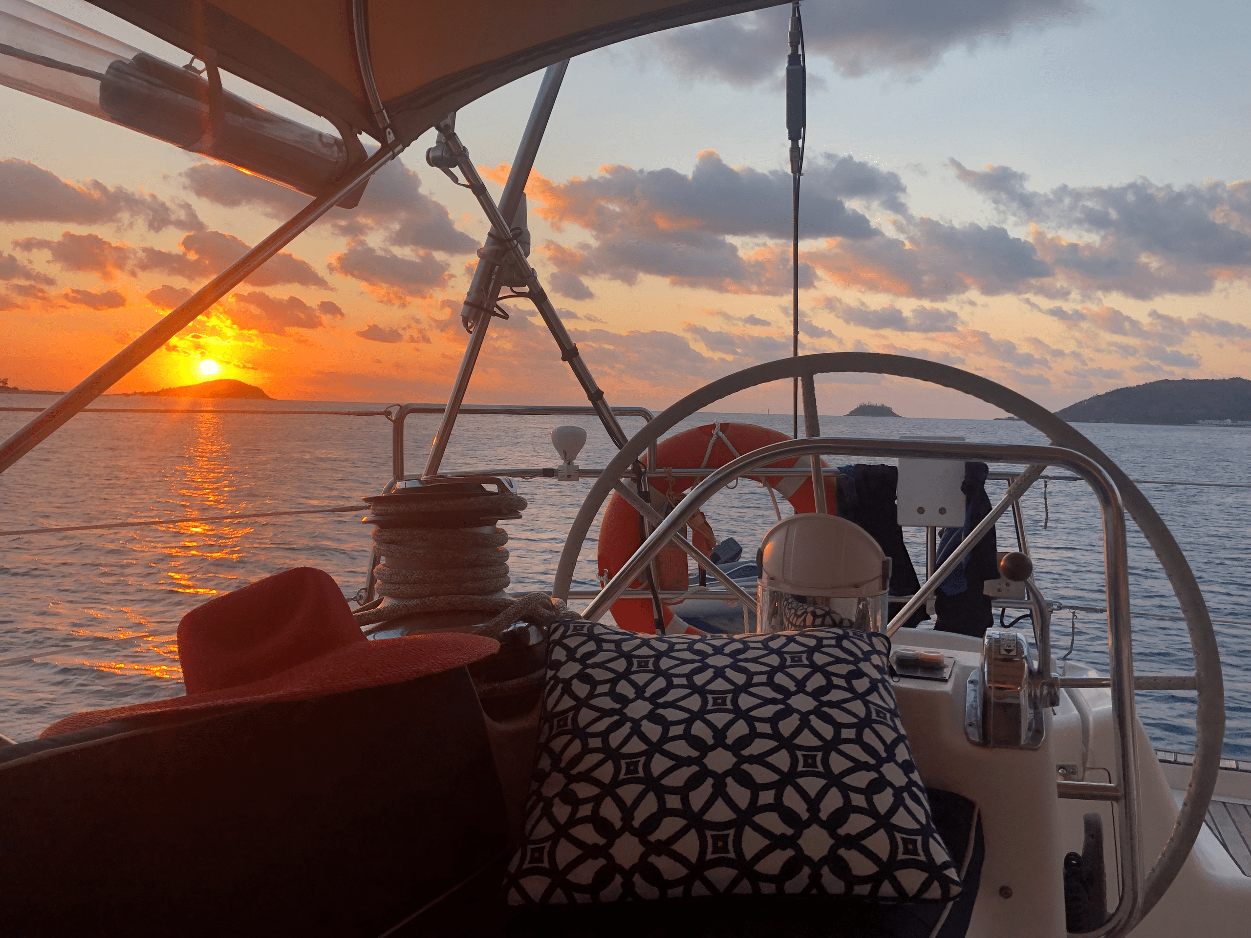 Step aboard a beautiful French yacht and escape into an unforgettable 3-hour sunset sail, perfect for sharing with family and friends. As you glide across the calm Whitsunday waters, watch the sun dip behind the rolling hills while Airlie Beach slowly comes alive, sparkling with evening lights.